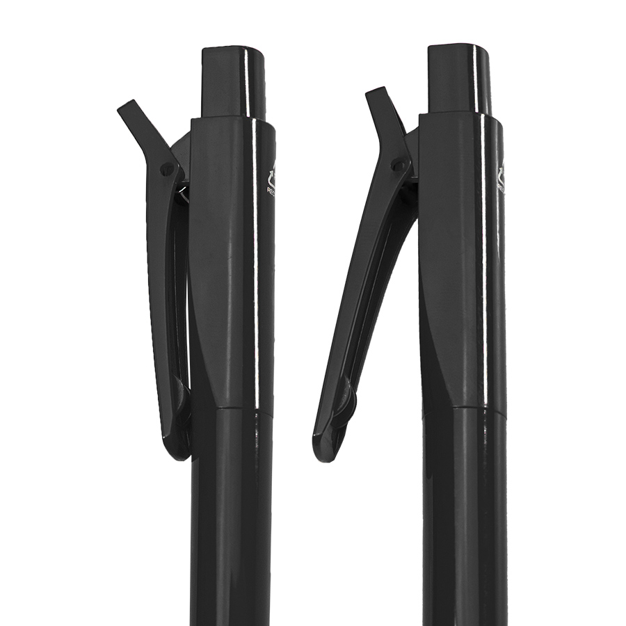 Ручка с необычным клипом-прищепкой, который надежно закрепит пишущий инструмент на блокноте, кармане, сумочке и т.д.. Размер клипа 45 х 5 мм (очень обширная площадь для нанесения). Верхняя часть ручки имеет утолщенную форму и плоские, а не круглые «бока», что тоже очень удобно для персонализации.• Цвет, близкий к Pantone Black• Размер φ 11,5 x 146 мм• Корпус из переработанного пластика с соответствующим значком• Нажимной механизм подачи стержня• Пулевидный пишущий узел 1.0 мм• Широкий клип-прищепка• Длина линии письма 800-1000 м• Цвет чернил синий• Сменный стержень Parker type• Виды нанесения: УФ печать -