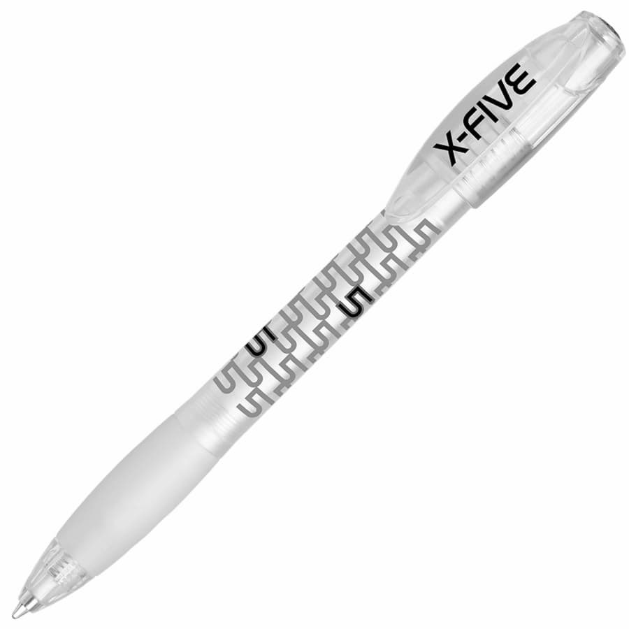 Ручка оригинальной формы с удобным нажимным механизмом и прорезиненной грип зоной, которая снимает напряжение с кисти руки при письме. -