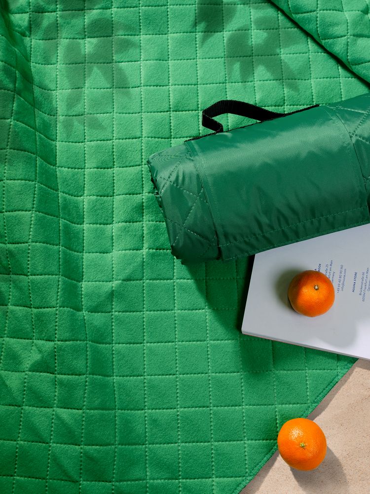 Складной двусторонний плед незаменим на пикнике, на природе или на пляже. На внутренней стороне из флиса приятно и тепло сидеть, а наружная сторона из полиэстера с водоотталкивающим покрытием не позволяет пледу намокнуть и сильно испачкаться.