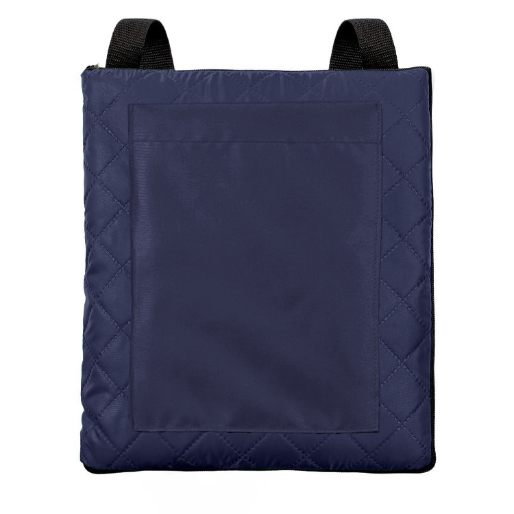 Двухсторонний плед с водоотталкивающим покрытием с одной стороны и мягким флисом с другой. Складывается в сумку на плечо и фиксируется с помощью молнии.Есть наружный карман. -