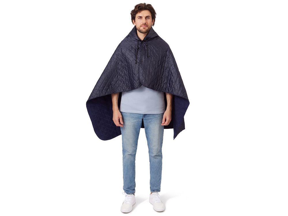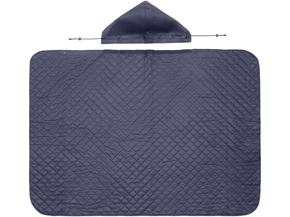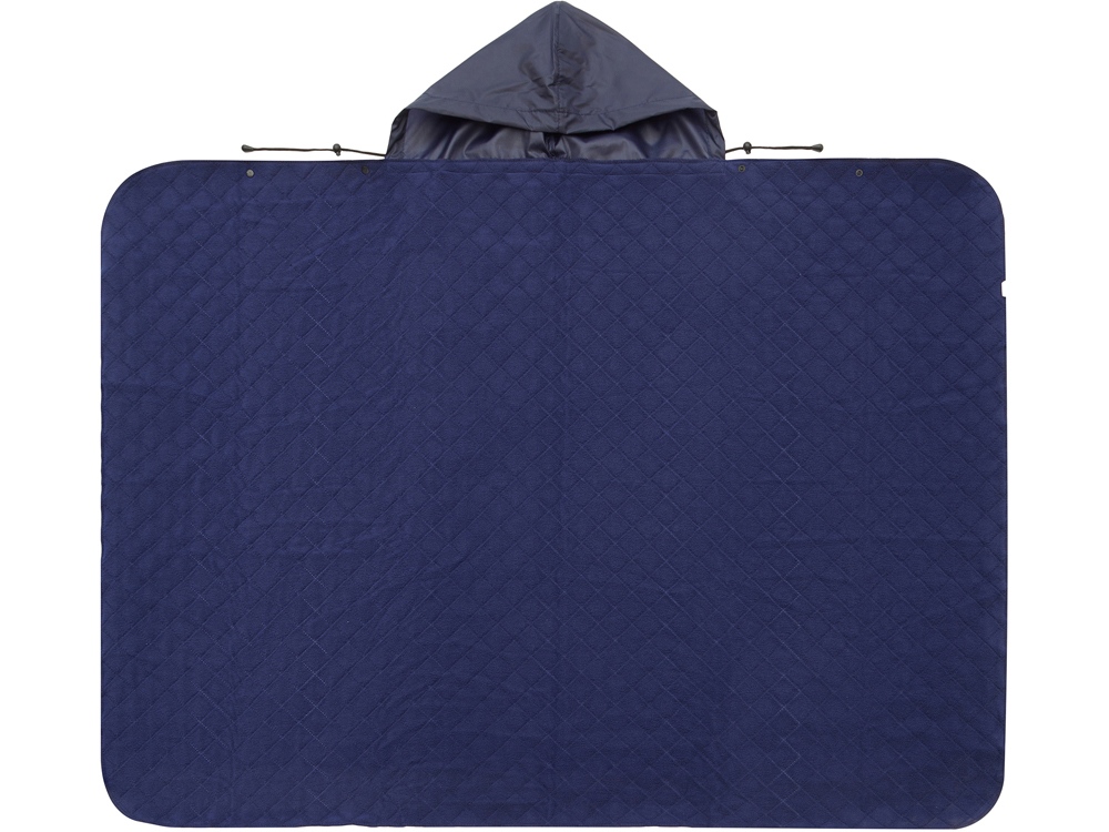 На внутренней стороне из флиса приятно и тепло сидеть, а наружная сторона из полиэстера с водоотталкивающим покрытием не позволяет пледу намокнуть или сильно испачкаться. Для больше удобства использования пледа во время дождя в комплекте идет капюшон, который фиксируется с помощью липучки. Накинув плед на плечи, застегните его на кнопки вверху и наденьте капюшон. Вы не промокните во время неожиданного дождя!