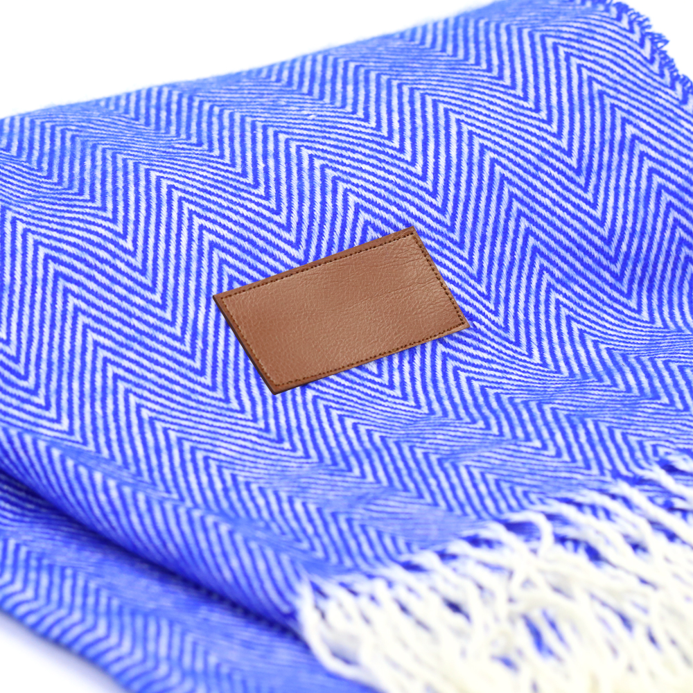 Плед SAMUM изготовлен из высококачественной акриловой пряжи, что позовляет добиться мягкости и тепла как от натуральной шерсти. Благодаря составу плед легкий, хорошо сохраняет теплоизолирующие свойства и надолго радует внешним видом. Также гипоаллергенен, не накапливает статическое электричество и легко стирается. Плед имеет классический узор “елочка”, с бахромой по краям. Для нанесения логотипа предусмотрена нашивка из кожзама (8 x 4 см). Плед упакован в пластиковый пакет, сложен в виде рулона с текстильным держателем.- Виды нанесений: Термотрансфер DTF, Гравировка А3, Вышивка, Шелкотрансфер