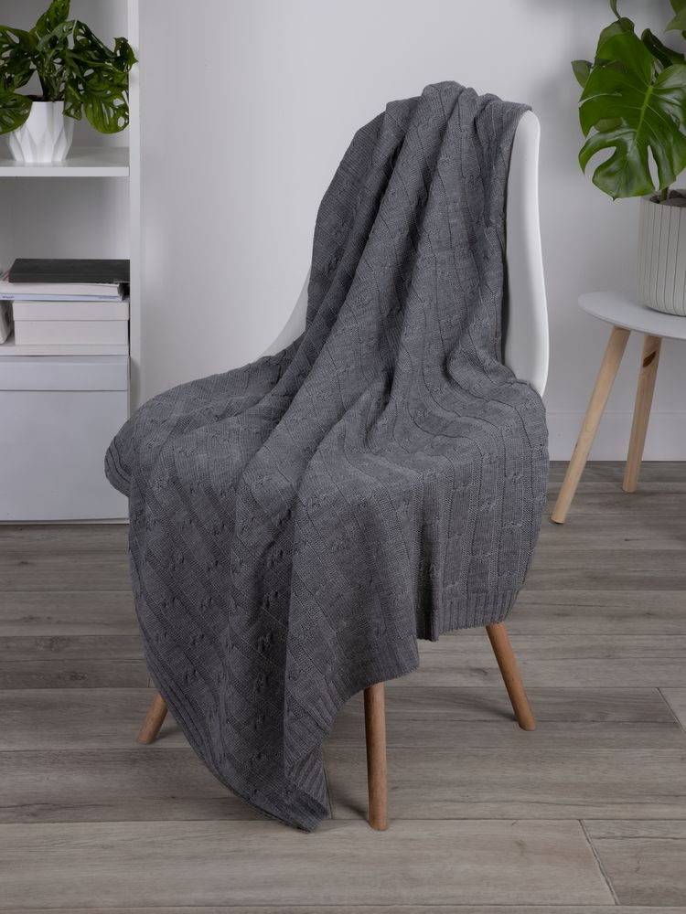 Вязаный плед фактурной вязки из меланжевой пряжи.