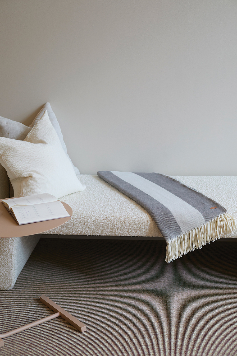 Плед Tella от VINGA — это классический дизайн и шведское качество. Сдержанные цвета и классический узор в широкую полоску подходят к любому интерьеру. Мягкая бахрома на концах пледа создает атмосферу домашнего уюта. Размеры пледа, 130х170 сантиметров, позволяют использовать его как покрывало, накидку и даже одеяло. На 40% он изготовлен из акрила, а на 60% — из уникальной пряжи Polylana®. Это экологичный материал, в составе которого переработанные материалы. Polylana® сохраняет тепло и мягкость натуральной шерсти, но наносит минимум вреда природе. Сертифицировано AWARE™. Наличие индикаторных частиц AWARE™ подтверждает, что мы действительно используем переработанные материалы. 2% с продажи каждой вещи, отмеченной сертификатом AWARE™, мы перечисляем в поддержку всемирной организации Water.org.