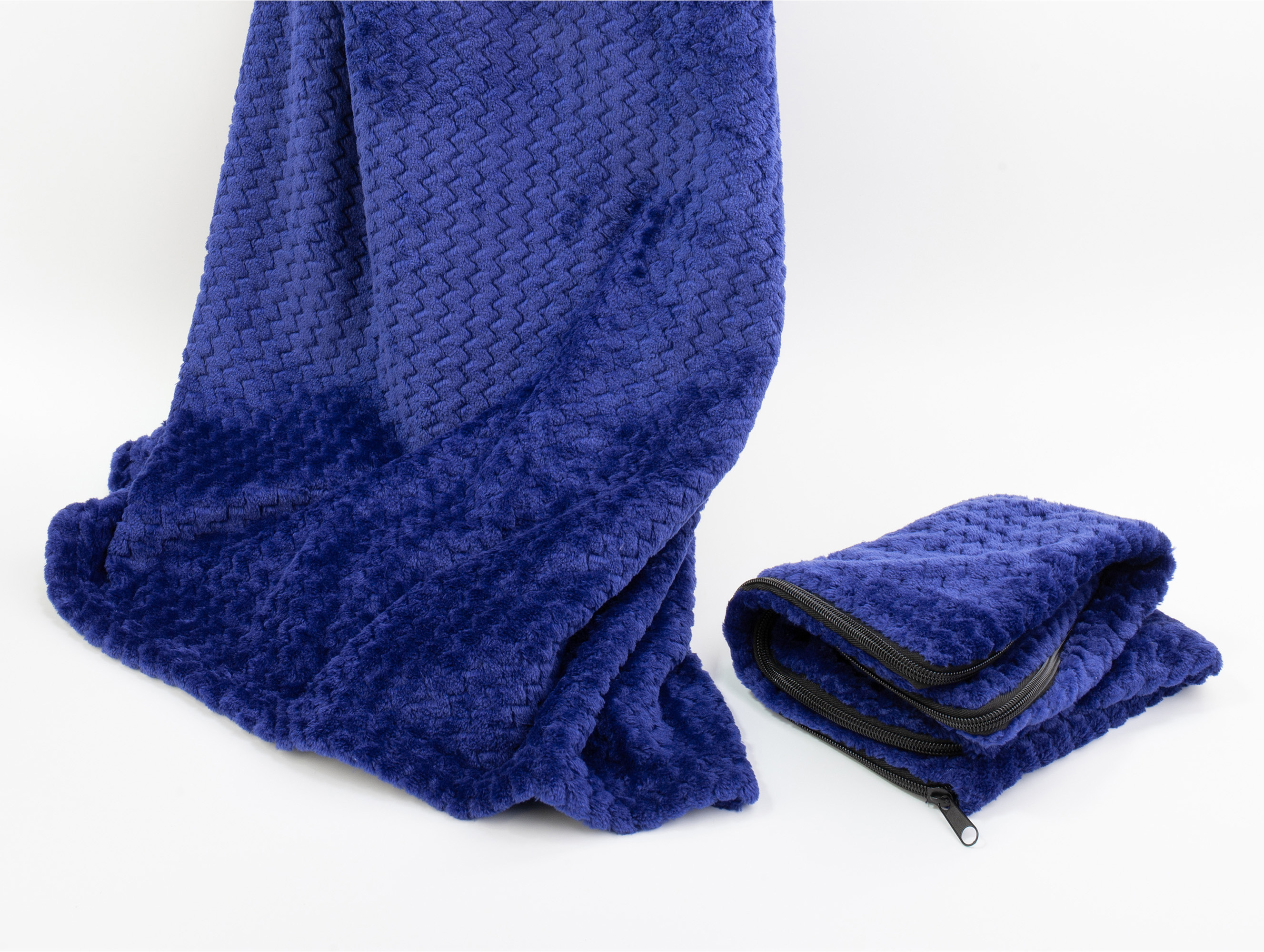 Уютный, необычайно теплый и мягкий плед из объемного флиса (плотность 260 гр/м2) с рисунком "Волна" в чехле 35 х 32 см из того же материала. Темно-синий (navy) цвет идеально подходит для корпоративного подарка. Плед удобно хранить, он легко складывается в чехол и занимает мало места.