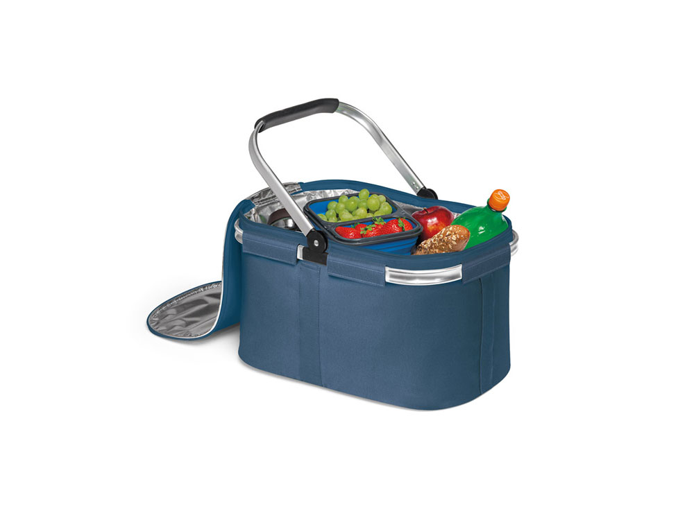 Гибкая корзина для пикника 600D. Состоит из двойного закрытия и внутренней подкладки. Корзина со съемной алюминиевой структурой, эргономичной ручкой из EVA и объемом до 14 л. 460 x 270 x 250 мм. -