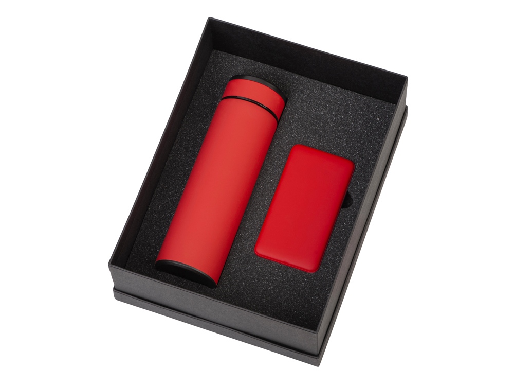 термос - нержавеющая cталь с покрытием софт-тач, внешний аккумулятор- пластик с покрытием софт-тач