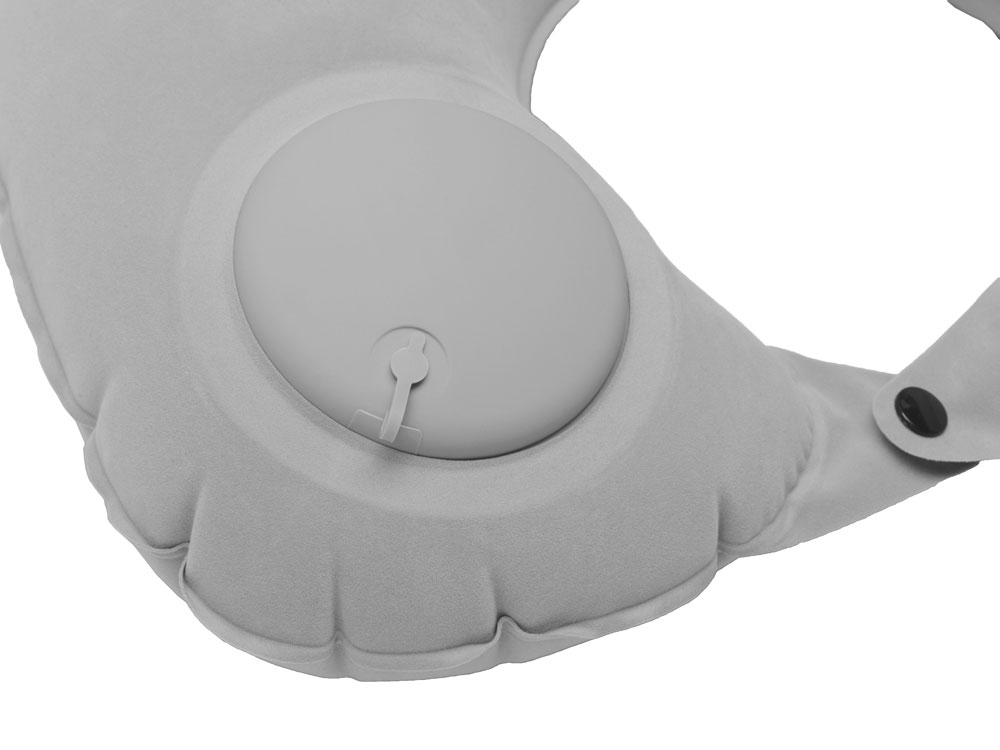 На обратной стороне от насоса-помпы находится клапан для сдувания воздуха из подушки. Двухуровневая фиксация кнопками позволит выбрать наиболее комфортное положение на шее. В комплекте идет чехол на завязках для хранения и удобной транспортировки.