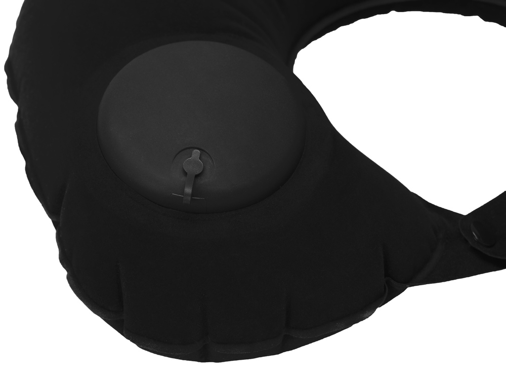 На обратной стороне от насоса-помпы находится клапан для сдувания воздуха из подушки. Двухуровневая фиксация кнопками позволит выбрать наиболее комфортное положение на шее. В комплекте идет чехол на завязках для хранения и удобной транспортировки.