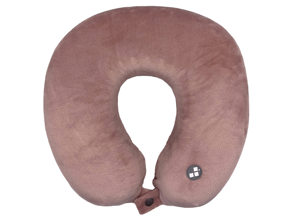 Удобная кнопочная застёжка надёжно фиксирует подушку на шее, а в комплект входит прочный круглый чехол на молнии — для компактного хранения и перевозки.