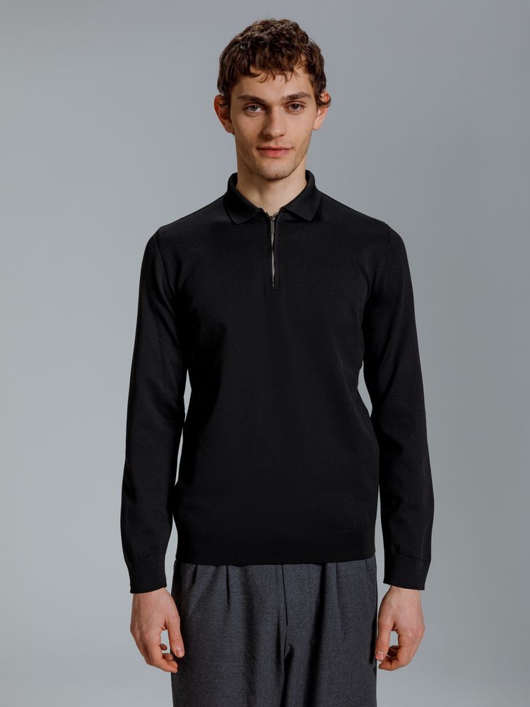 Мужская рубашка поло с длинным рукавом прямого силуэта.- Планка с металлической молнией