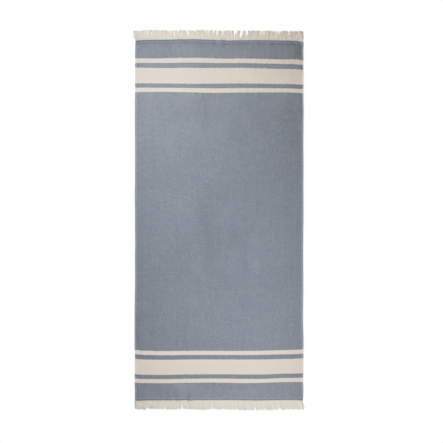 Мягкое полотенце VINGA Tolo на 75% состоит из хлопка и на 25% — из полиэстера. Благодаря смешанному составу получилась прочная и приятная на ощупь ткань, которая хорошо впитывает влагу. Полотенце отличается двумя разными типами фактуры: одна сторона полотенца махровая, вторая — из плотного, но мягкого полотняного переплетения. Размер: 180х80 см. Размер бахромы: 5 см. Плотность ткани: 360 г/м2. Сертифицировано OEKO-TEX® STANDARD 100, 09.HIN.68091, Hohenstein HTTI.