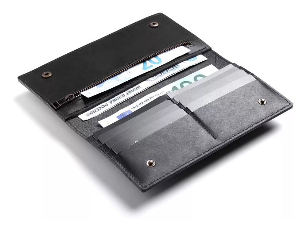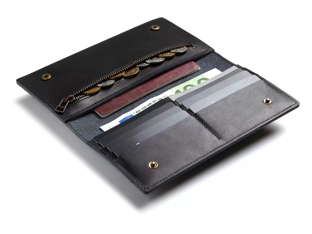 В меру строгий и универсальный, этот кошелек будет верным решением для людей, привыкших носить всё своё при себе.