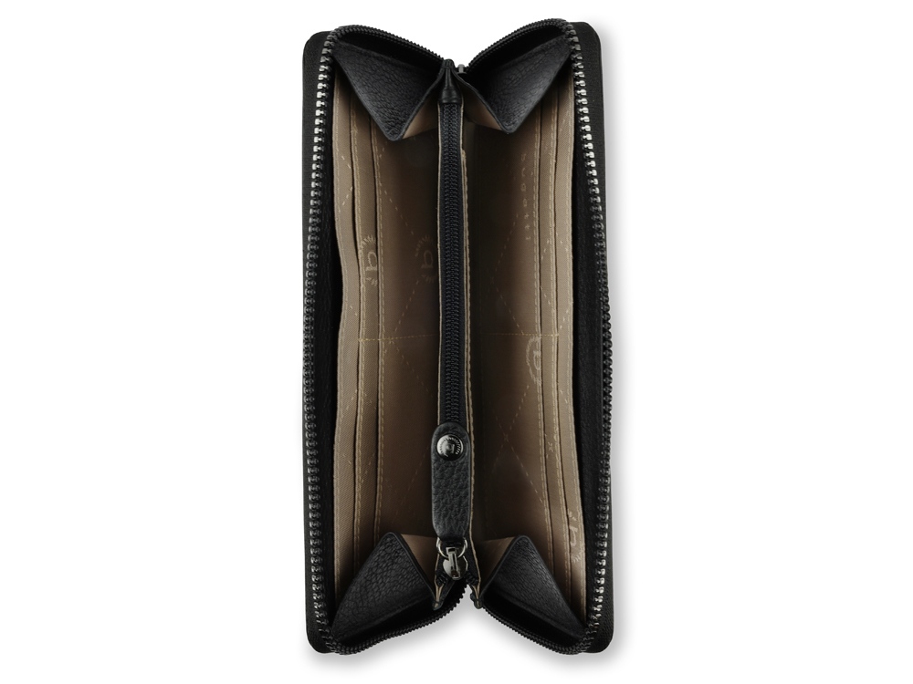 Функциональная организация: основное отделение на молнии, 8 слотов для карт, 2 кармана, 2 отделения для купюр, отделение для монет на молнии, задний карман на молнии, ремешок на запястье, защита данных RFID.