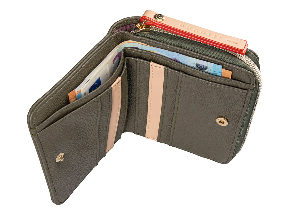 Функциональная организация: 2 отделения для монет, 2 отделения для банкнот, 8 слотов для карточек, карман