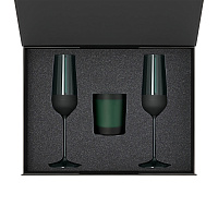 Подарочный набор свеча Enigma + 2 бокала для шампанского Emerald в черной коробке