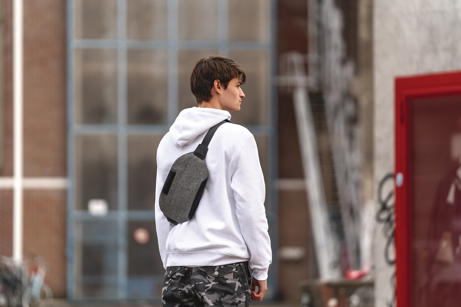 Эта многофункциональная поясная сумка не только стильно выглядит, но и надежно защищает ваши вещи от карманников. Сумка сделана из непрорезаемого материала, оснащена запираемой молнией и пряжкой, которая открывается при помощи 3 кнопок. Носите сумку Urban как поясную сумку, кросс-боди или на плече, чтобы выглядеть круто и стильно. Зарегистрированный дизайн®