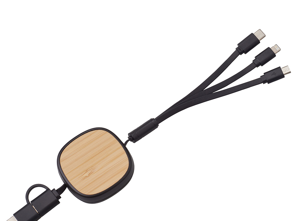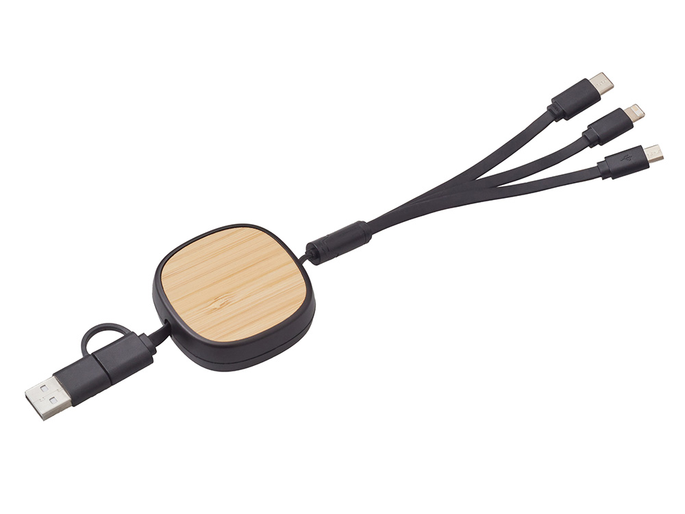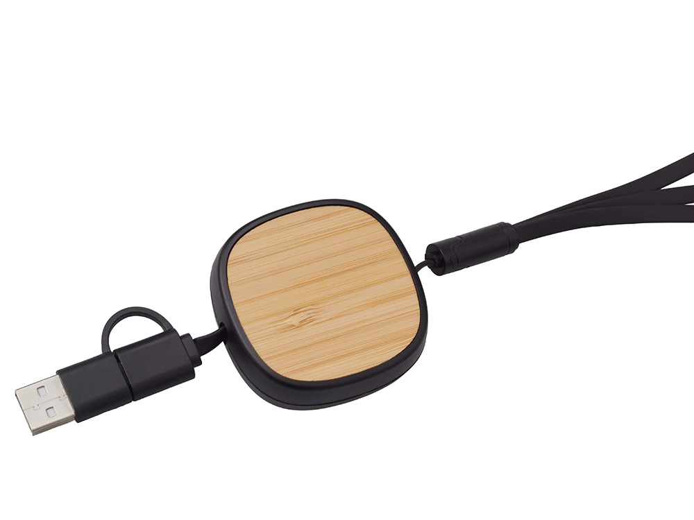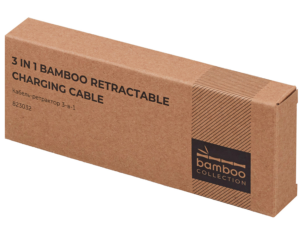 Универсальный кабель с ретрактором 3-в-1 Retrax — это стильное и практичное решение для зарядки и передачи данных на ходу. Компактный корпус из экологичного бамбукового покрытия сочетается с удобной системой автоматического складывания, что делает его идеальным спутником в путешествиях, на работе и в повседневной жизни. Кабель оснащён тремя разъёмами: USB-A, Micro-USB и Lightning, обеспечивая совместимость с широким спектром устройств — от смартфонов до планшетов и других гаджетов. Благодаря прочной конструкции и элегантному дизайну, Retrax станет незаменимым аксессуаром для тех, кто ценит функциональность и стиль. Поставляется в фирменной коробке bamboo collection.