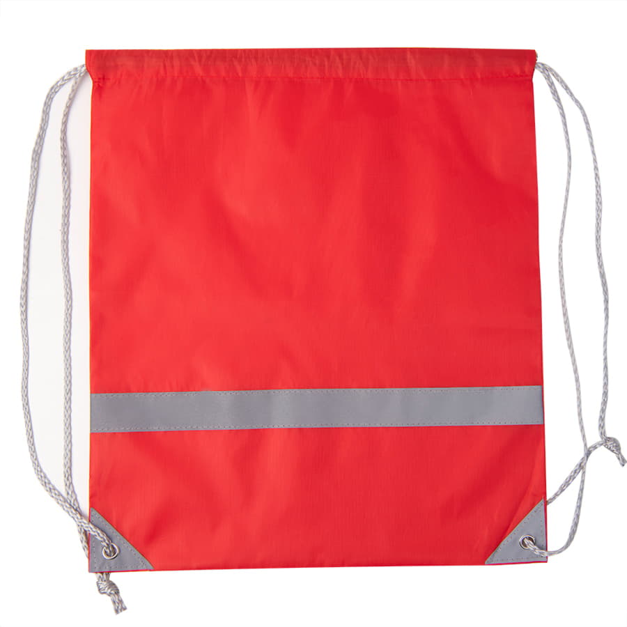 Просто и безопасно! Рюкзак-мешок RAY из полиэстера 210Dсо светоотражающей полосой спереди, светоотражающими уголками,усиленными металлическими люверсамиЛегко и просто затягивается по верхней части серыми шнурами.Красный цвет близкий к Pantone 199C -