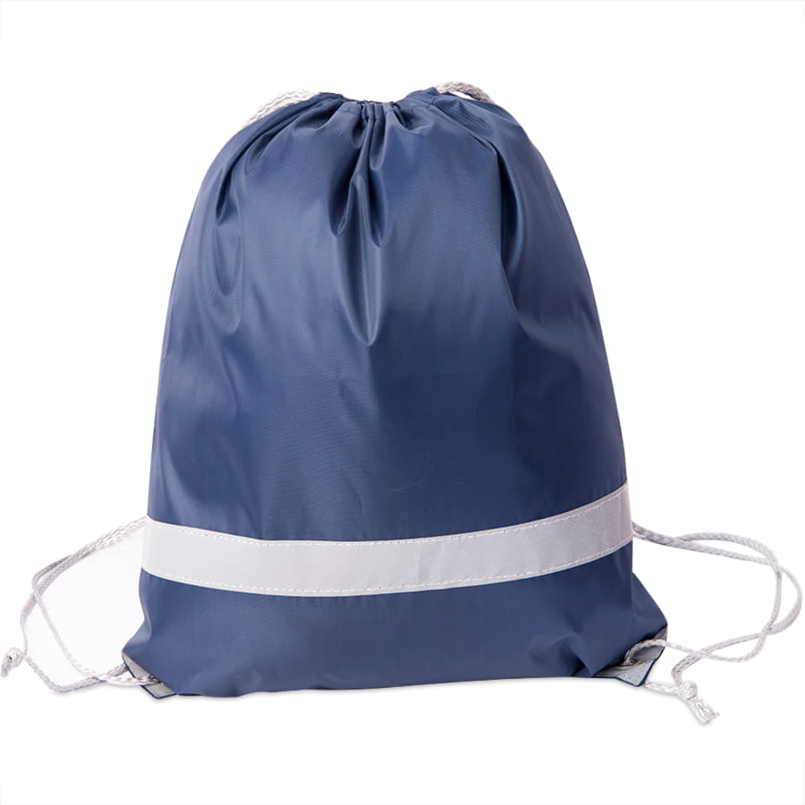 Просто и безопасно! Рюкзак-мешок RAY из полиэстера 210Dсо светоотражающей полосой спереди, светоотражающими уголками,усиленными металлическими люверсамиЛегко и просто затягивается по верхней части серыми шнурами.Тёмно-синий цвет близкий к Pantone 289C -