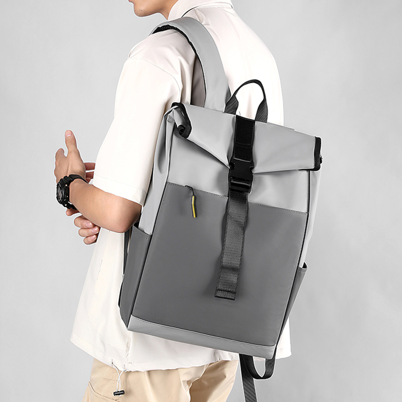 Стильная, элегантная и особо защищенная версия городского ролл-топ рюкзака ALVORT Его особенности - рюкзак сделан из особо прочного полиэстера покрытого водо- и грязезащитной полиуретановой пропиткой, устойчивой к широкому диапазону температур. Одно большое отделение закрывается на липучки-велькро и фиксируется тесьмой с защёлкой-фастексом и возможностью регулирования длины под объём наполнения рюкзака. По бокам два открытых кармана для бутылки, зонта и прочих аксессуаров. На передней стенке объёмный карман на молнии. Сбоку вход в уплотнённое отделение на молнии для ноутбука 15 дюймов. Двойное уплотнение задней стенки распределяет вес и снижает нагрузку на позвоночник. Уплотнённые плечевые ремни регулируются по длине. 3D-сетка на подкладке плечевых ремней предотвращает скольжение и обеспечивает дополнительную вентиляцию и комфорт при контакте с кожей и одеждой. Размер: 32*46 (56 в развёрнутом виде)*14 см Материал товара: Полиэстер с водо- и грязенепроницаемой пропиткой Плотность: 600D Рекомендуемая максимальная нагрузка: не более 10 кг. Цвет по PANTONE® (максимально приближен): Cool Gray 6C / Cool Gray 11C Вместимость: 17 л. Вес: 0.8 кг. Возможна замена пуллеров (арт. 4093) в семи вариантах цвета и нанесение на них УФ печати в количестве 2 шт Возможна установка шильды (арт. 4090, 4091, 4092) на передний карман и нанесение на неё гравировки / тампопечати