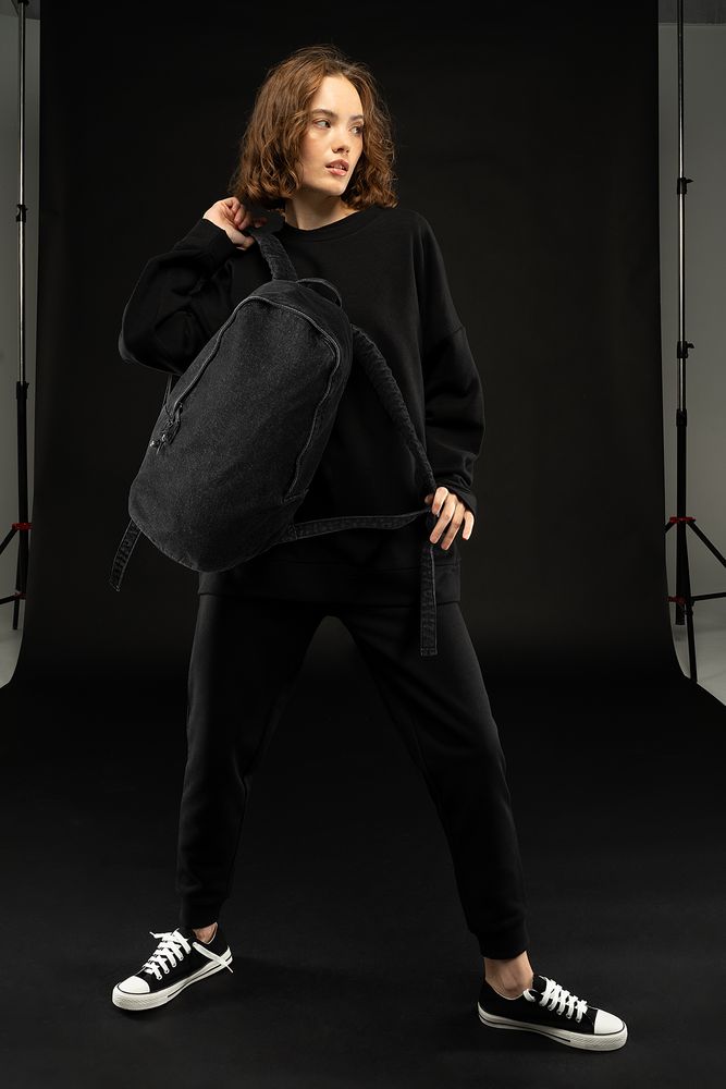 Лаконичный рюкзак из джинсовой ткани разработан в рамках единой коллекции и легко собирается в комплекты. Специально спроектированные лекала и технологии пошива открывают простор для любых вариантов кастомизации и нанесения изображений. На видимой части изделий нет лейблов с айдентикой бренда, а название бренда с уходника легко удалить.