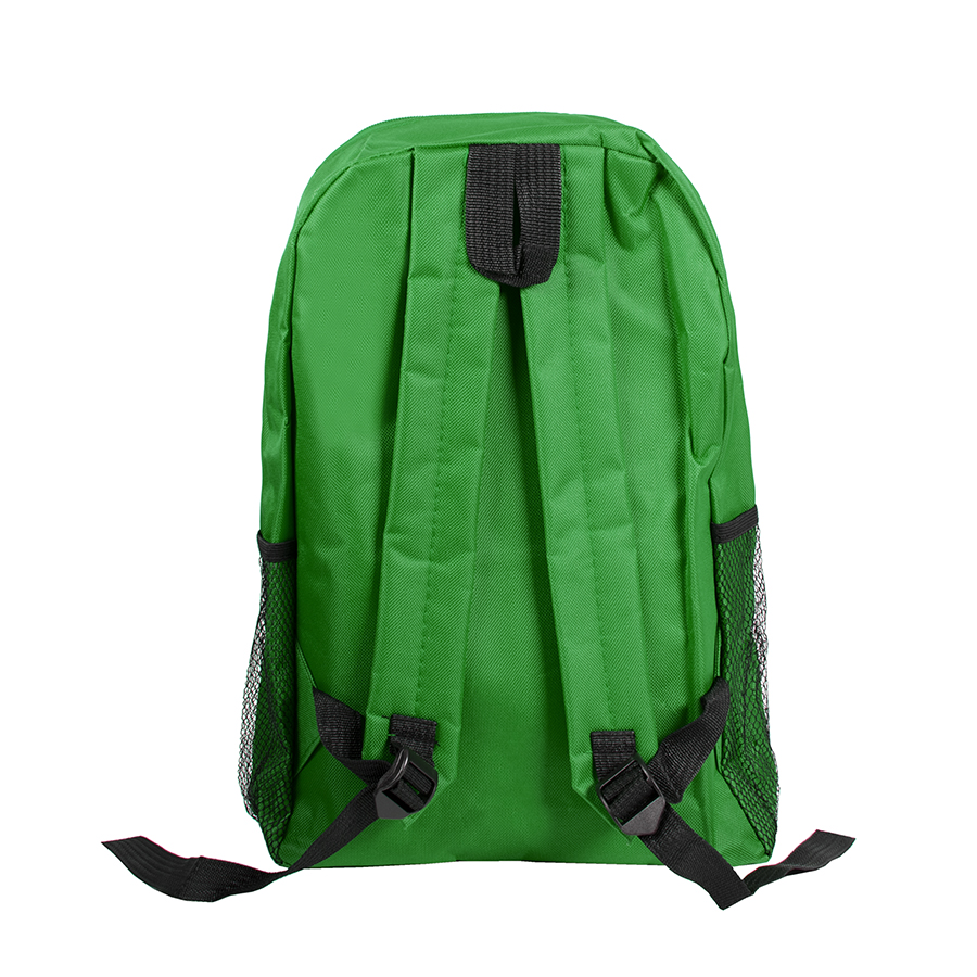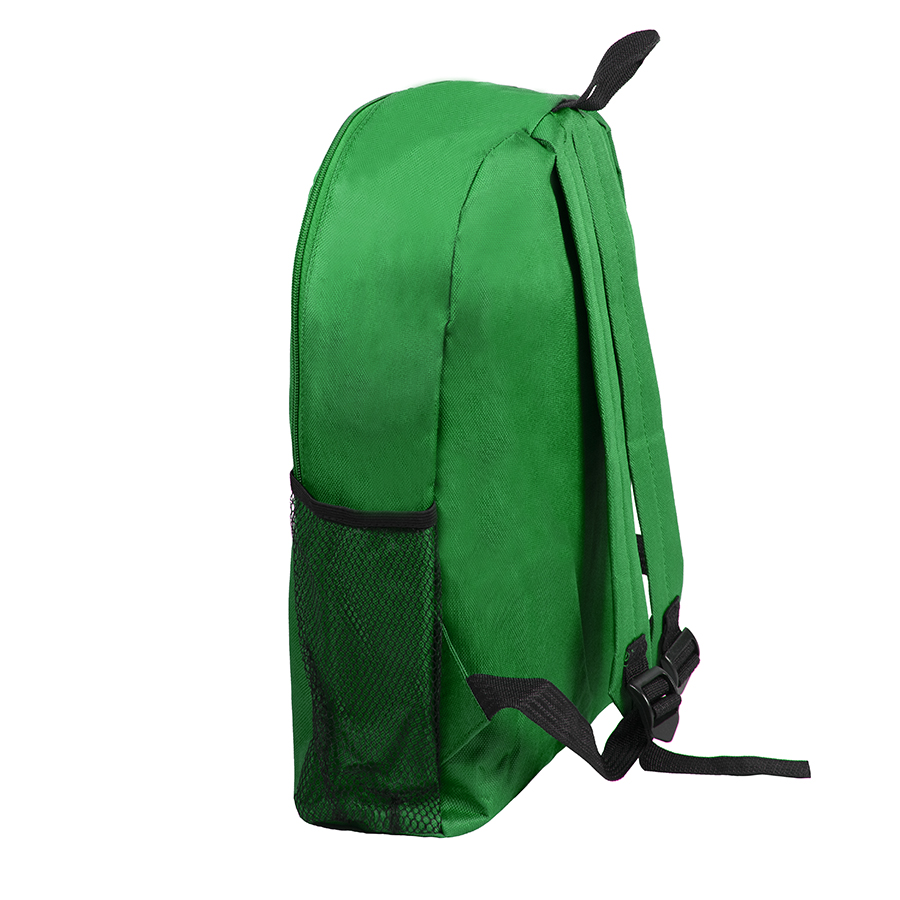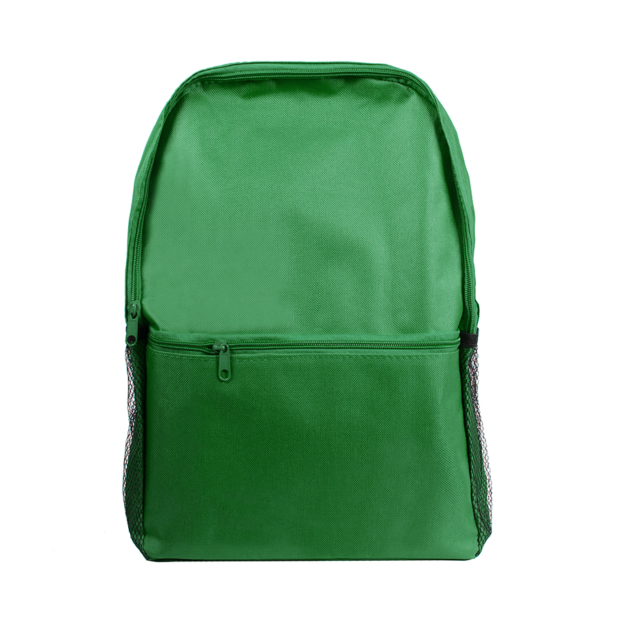 Цвет, близкий к Pantone Green 347 С Легкий промо-рюкзак из прочного полиэстера 600D с одним основным отсеком и внешним карманом на молнии. Два боковых кармана из сеточки на резинке добавят места для бутылочки с водой или хранения мелких предметов. Регулируемые мягкие лямки помогут сделать рюкзак с вещами почти невесомым. -