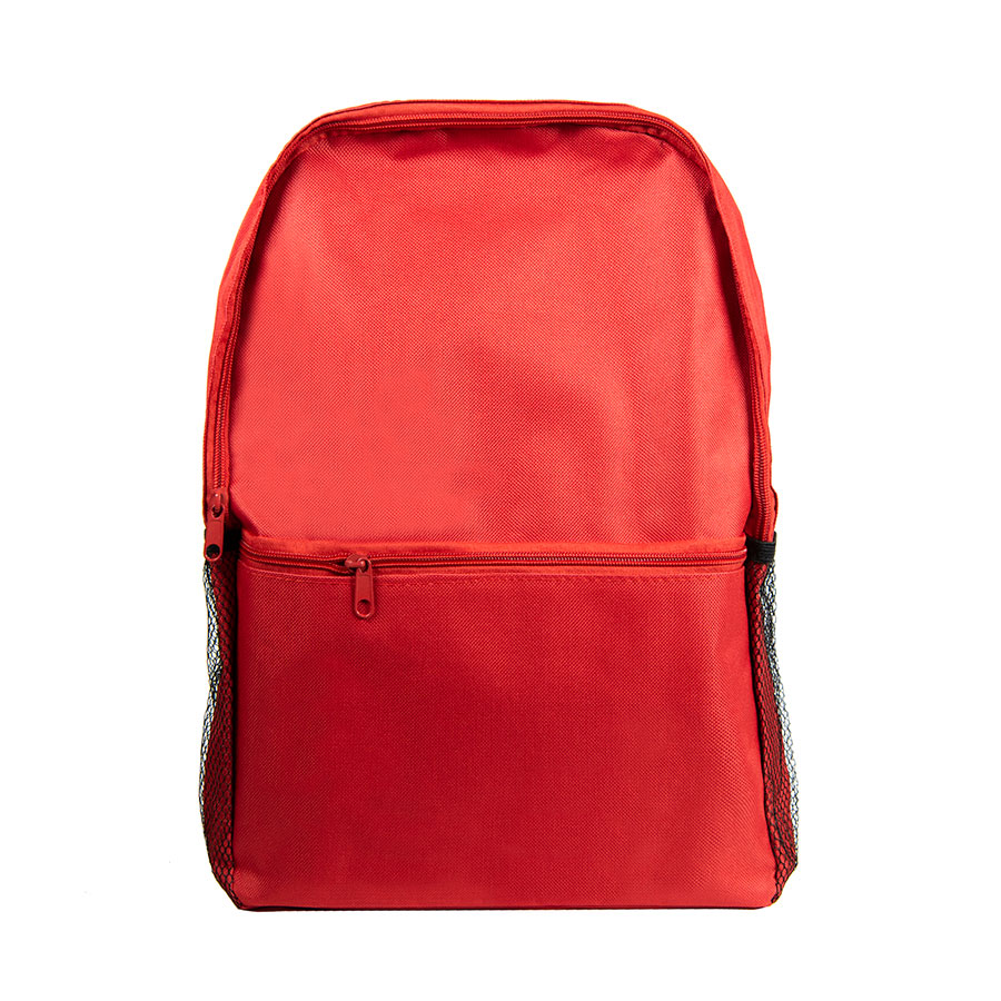 Цвет, близкий к Pantone Red 186 C Легкий промо-рюкзак из прочного полиэстера 600D с одним основным отсеком и внешним карманом на молнии. Два боковых кармана из сеточки на резинке добавят места для бутылочки с водой или хранения мелких предметов. Регулируемые мягкие лямки помогут сделать рюкзак с вещами почти невесомым. -
