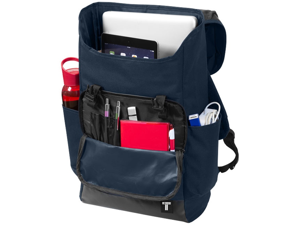 Рюкзак для ноутбука 15,6. Рюкзак для ноутбука 15,6 с дном и з тарпаулина, для легкой очистки. Большой передний карман на молнии для мелочей. Боковой карман для бутылки, застежки клапана можно использовать для фиксации зонтика или дождевика. 300D Полиэстер и тарпаулин. -