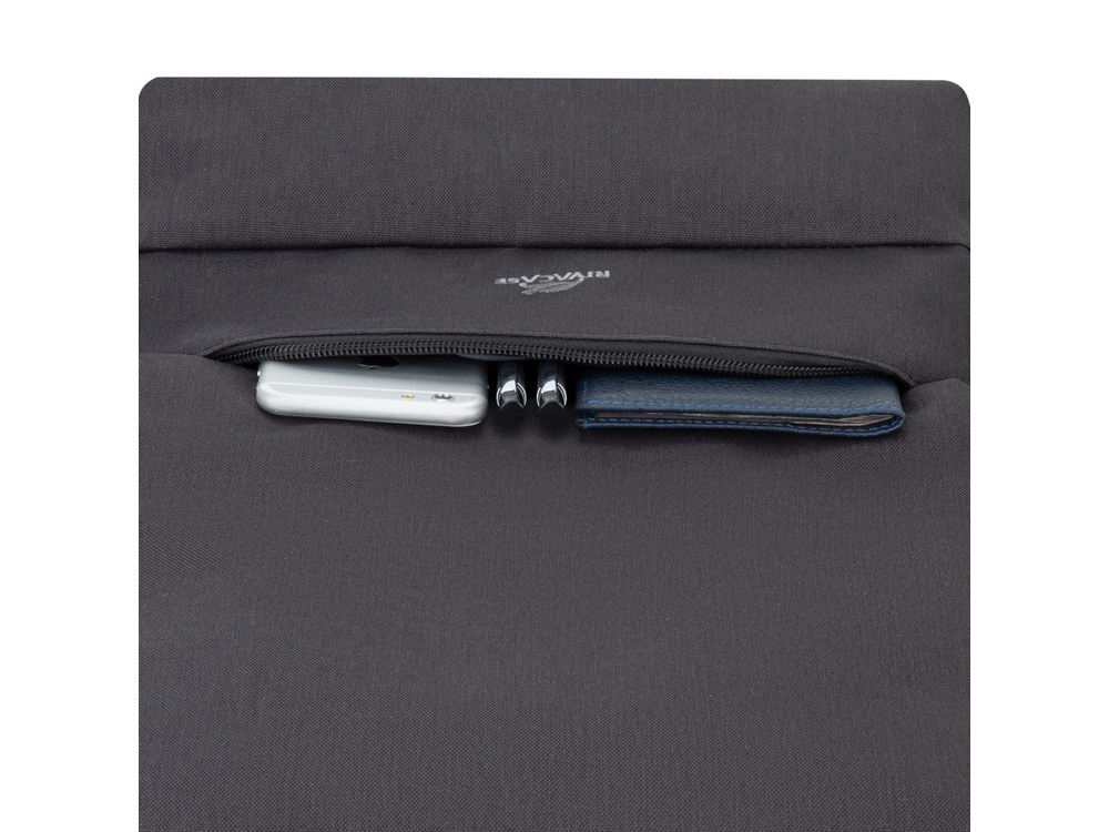 • Внешний скрытый передний карман на молнии для хранения аксессуаров, также оборудован панелью-органайзером для хранения визитных карт, флэш-накопителей, смартфона.