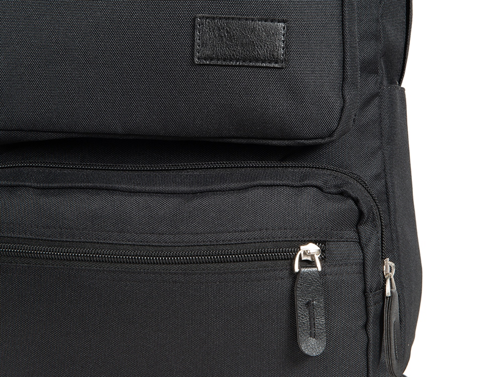 - отделка из искусственной кожи на наружном кармане и на бегунках -