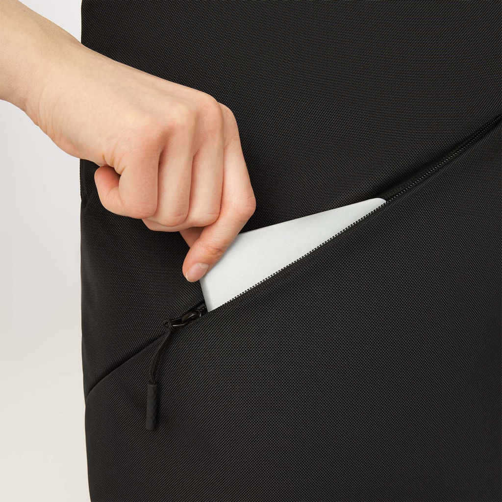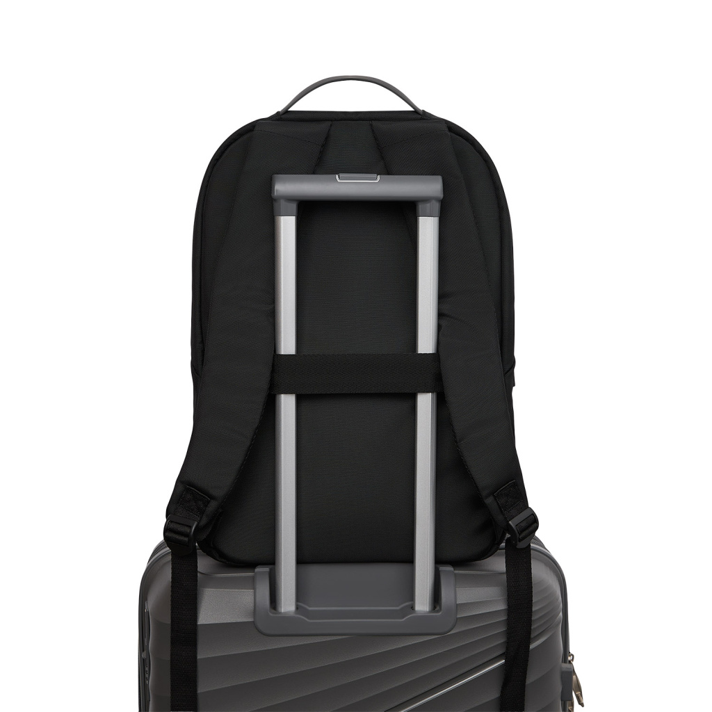 Основное отделение с карманом для ноутбука (до 15,6") и фиксатором на липучке - техника надёжно зафиксирована и защищена от ударов. Внешний карман на молнии подойдет для ключей, кошелька, наушников и других мелких предметов.  Есть багажная лента на спинке.
