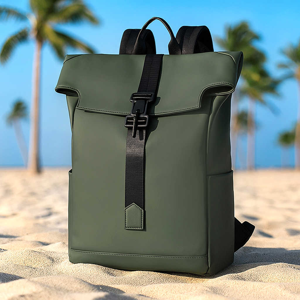 Стильный ролл-топ рюкзак SAFARI. Его особенности - сочетание с высококачественной искусственной кожи с бархатистым на ощупь микрофибровым покрытием с инновационными элементами. Одно большое отделение закрывается супер-технологичной магнитной пряжкой на регулируемый по длине ремень. Внутри уплотнённый карман для ноутбука до 15,6 дюймов и карман на молнии для мелочей и ЭКСКЛЮЗИВНАЯ ОПЦИЯ - специальный карман-сетка ДЛЯ АРОМАСАШЕ. На передней стенке один большой скрытый карман на молнии. Два открытых кармана по бокам рюкзака позволяют разместить всё необходимое и существенно расширяют функционал и вместимость рюкзака. Инновационная технология структуры широких регулируемых по длине плечевых ремней обеспечивает максимальный комфорт и предотвращает скольжение. Уплотнённая задняя стенкя распределяет вес и снижает нагрузку на позвоночник, а специальная накладка для чемодана и карман на молнии делают этот рюкзак незаменимым спутником для путешествий. Короткая ручка укреплена накладкой из искусственной кожи для максимального комфорта рук. Размер: 45*32*16 см Материал: Искуственная кожа Рекомендуемая максимальная нагрузка: не более 8 кг. Вместимость: 18 л. Вес: 0,690 кг- Виды нанесений: Гравировка-А3 (оптоволоконный лазер), Установка Шильды, Установка Шеврона
