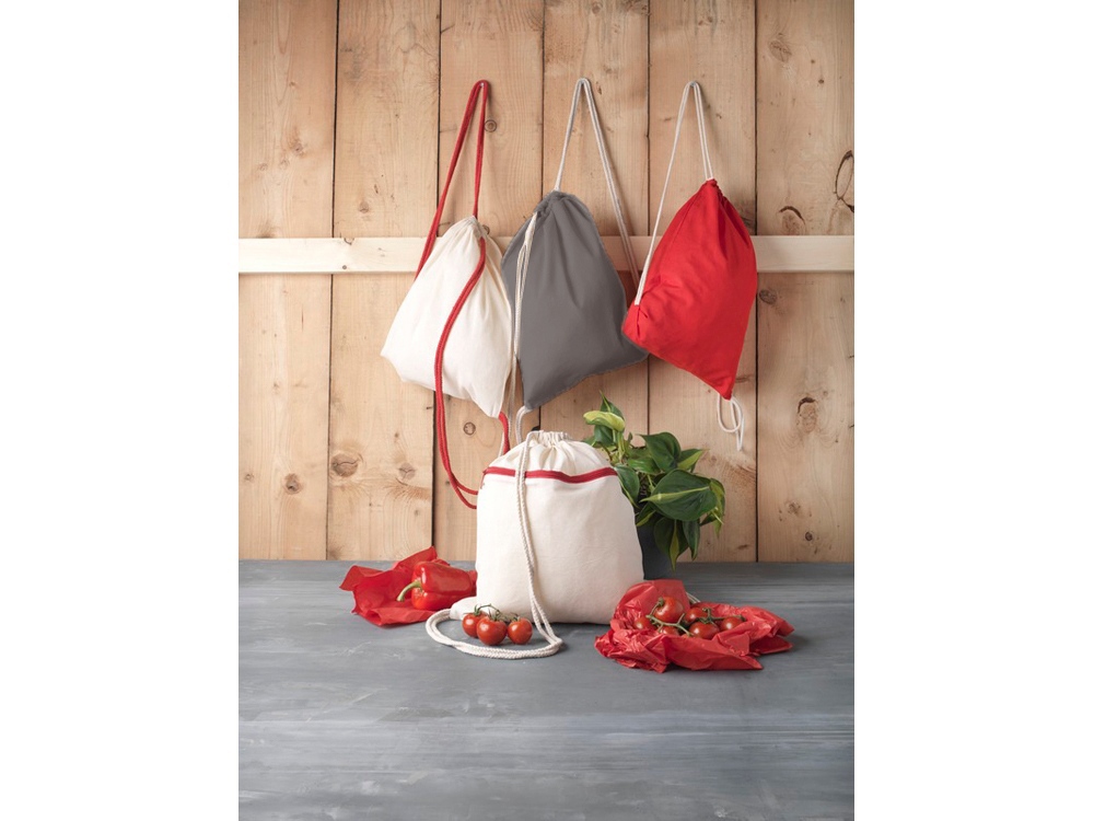 Большое основное отделение затягивается хлопковым шнурком. Прочность до 5 кг. -