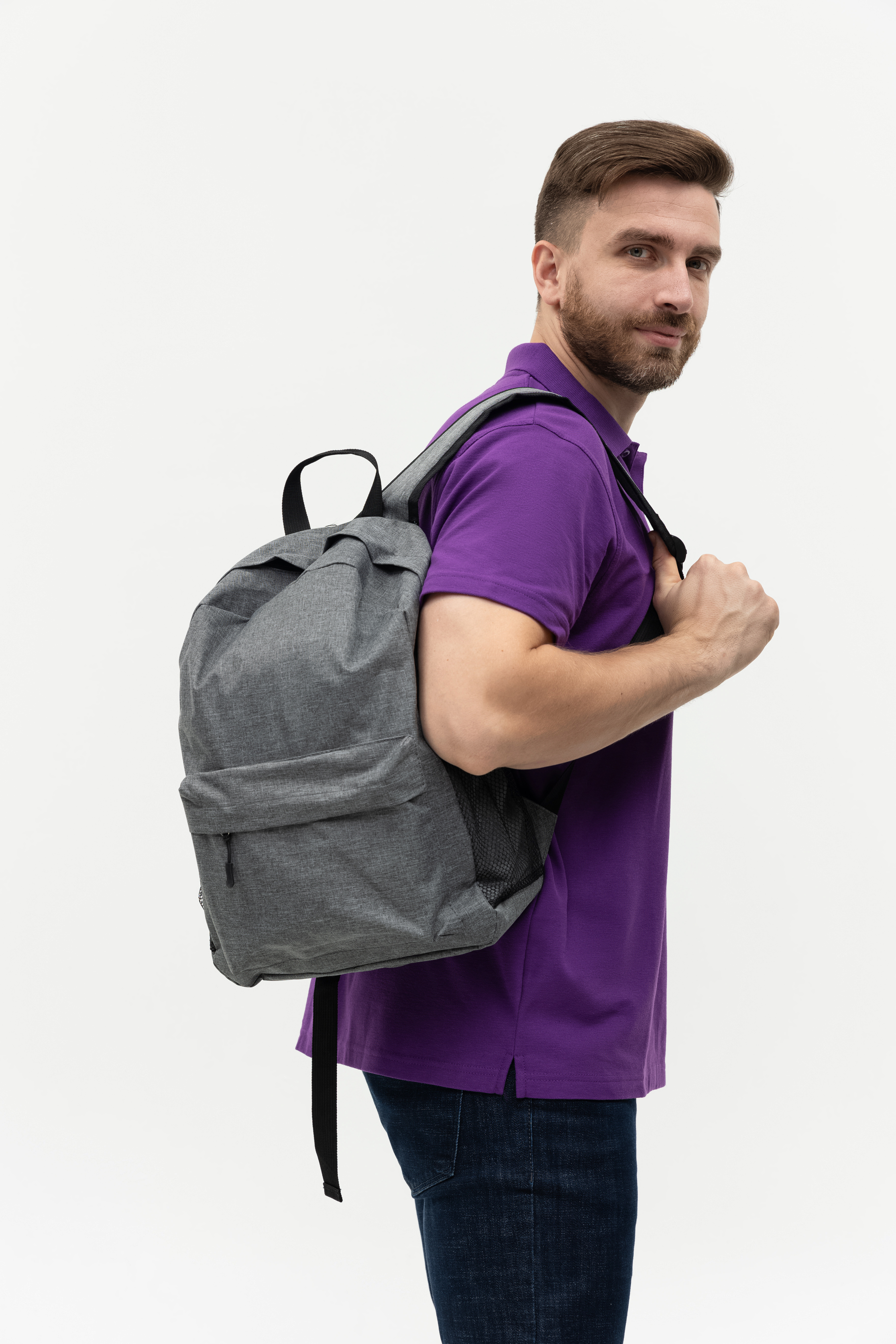 Рюкзак выполнен из плотной матовой ткани на основе полиэстера, которая не требует специального ухода. Модель имеет вместительное основное отделение, в него можно положить документы, ноутбук, зонт и прочие необходимые вещи.