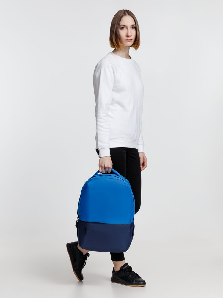 Двухцветное исполнение с темным низом и более светлым верхом, с одной стороны, помогает рюкзаку дольше сохранять опрятный внешний вид, а с другой — позволяет активнее и контрастнее выделить логотип компании.