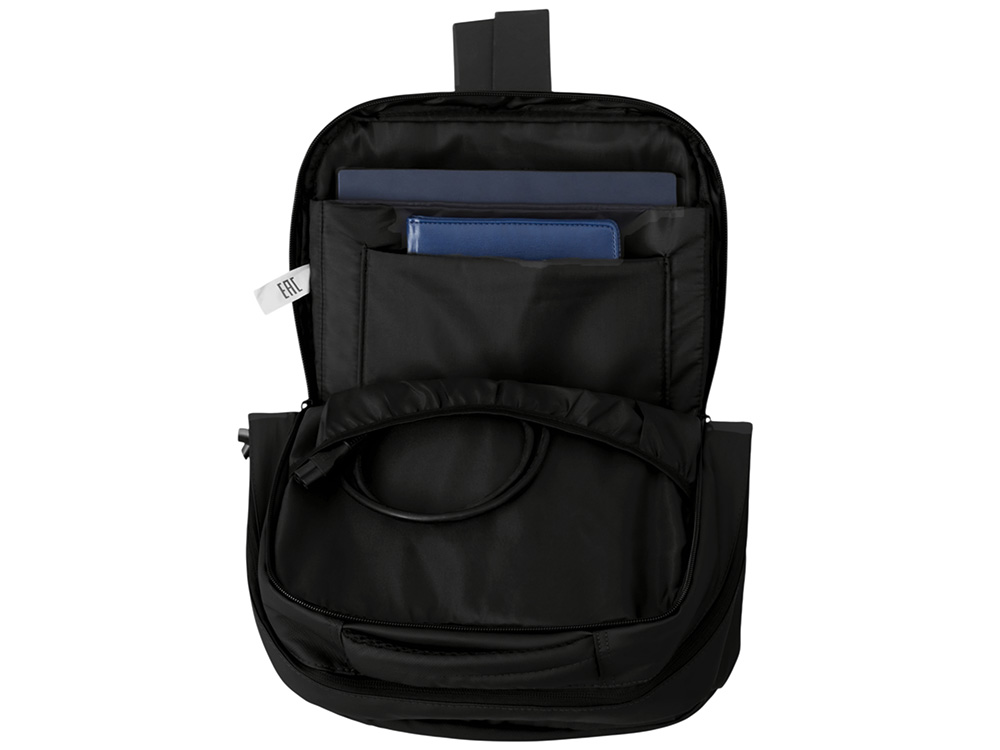 Непромокаемый бизнес рюкзак с двумя вместительными отделениями и карманом на молнии спереди. В одном отделении расположены карман для ноутбука и планшета, в другом органайзер и много пространства для одежды и других вещей на случай деловой поездки. На сетчатой спинке расположен потайной кармана на молнии для документов и личных вещей и ремень для крепления на ручку чемодана. Сверху удобная мягкая ручка для переноски. Лямки регулируются по длине. -