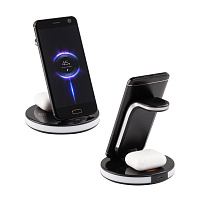 Настольная беспроводная (15W) зарядная станция "Smart Home" с bluetooth колонкой-лампой