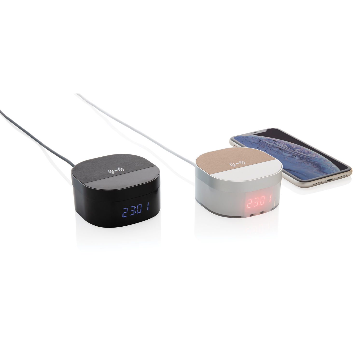 Функциональность и скандинавский стиль воплотились в нашей новой беспроводной док-станции Aria со встроенными цифровыми часами. Благодаря своему дизайну док-станция будет прекрасно смотреться как на вашем рабочем месте, так и на прикроватной тумбочке. Корпус устройства изготовлен из прочного алюминия и полиуретана. В комплекте идет Micro-USB кабель длиной 1,5 метра. Подходит для зарядки любых мобильных девайсов, поддерживающих стандарт Qi*, таких как Android последнего поколения, iPhone 8 и выше. Входное напряжение: 5V / 2A. Беспроводное выходное напряжение: 5V / 1A.