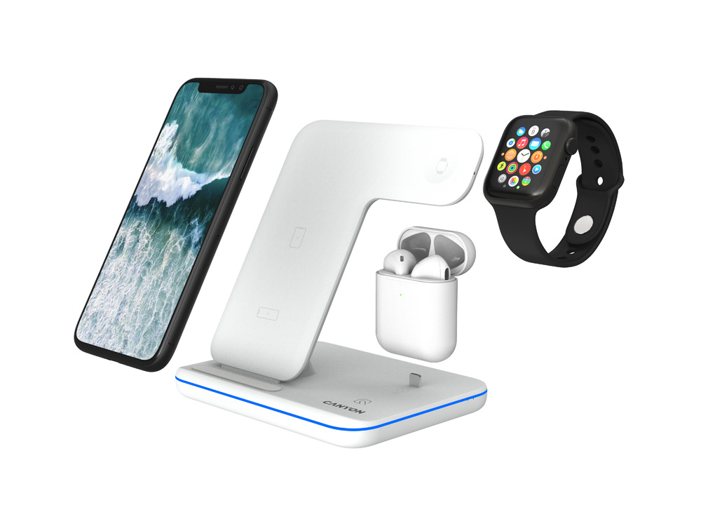 Эта беспроводная зарядная станция с функцией быстрой зарядки совместима с устройствами, оснащенными QI. Конструкция позволяет одновременно заряжать Apple Watch, Airpods, iPhone или смартфон на Android с поддержкой беспроводной зарядки QI. Безопасность и скорость зарядки обеспечивается интеллектуальным чипсетом Novoton.