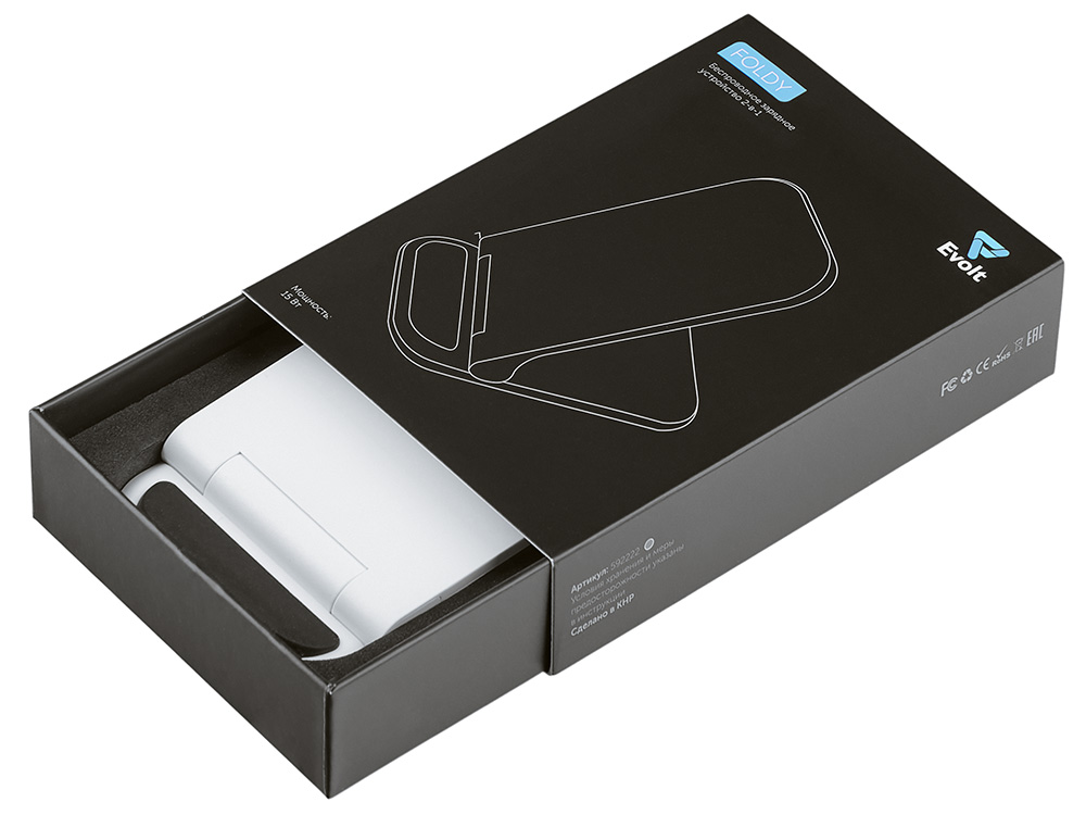 Идеальное решение для современного пользователя 2-в-1 — универсальная беспроводная зарядка-подставка. Два центра зарядки позволяют удобно размещать смартфон как в вертикальном, так и в горизонтальном положении. Благодаря складной конструкции устройство легко помещается в сумку или на полку, не занимая лишнего места на рабочем столе. А если вы хотите превратить зарядку в персонализированный подарок или рекламный сувенир — передняя панель подставки может быть полностью запечатана ярким УФ-изображением любого дизайна. Стильная, функциональная и компактная — ваш телефон всегда будет заряжен и в порядке. Мощность беспроводной зарядки до 15 Вт (при наличии сетевого адаптера 18 Вт и выше). Поставляется в стильной коробке-слайдере.
