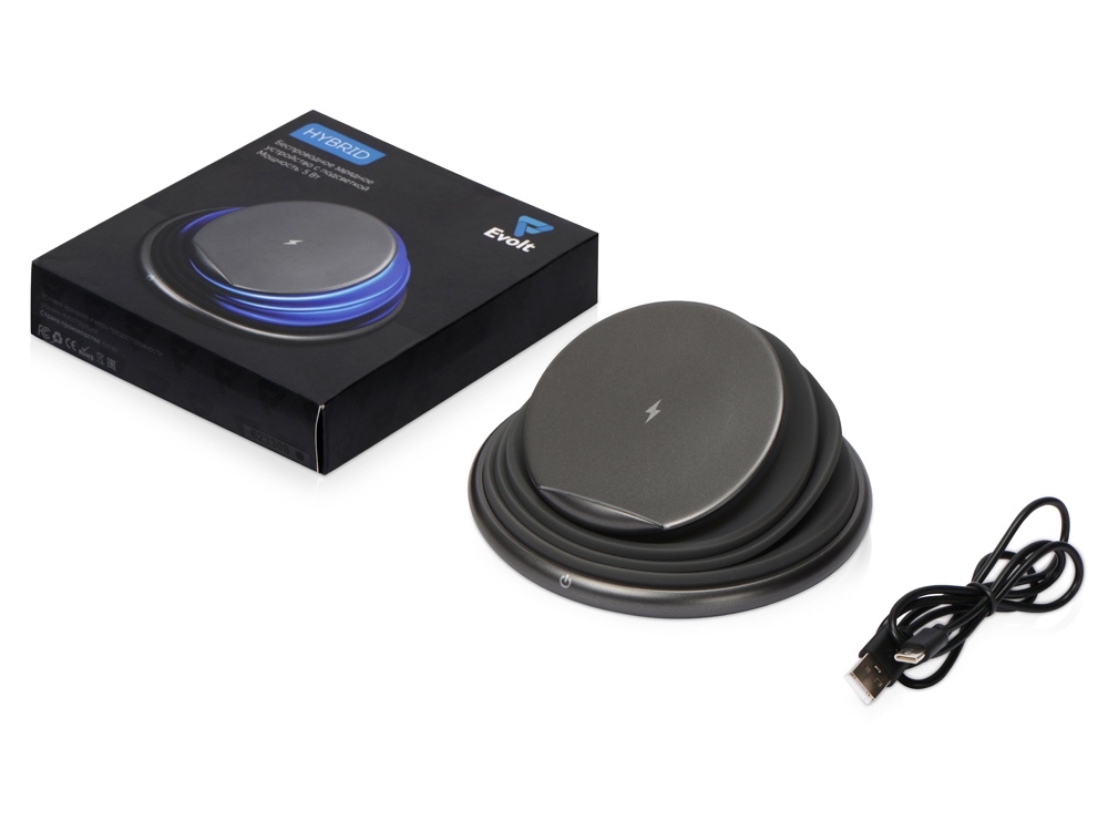 Hybrid - это беспроводная зарядная станция и ночник в одном устройстве. Ночник имеет 4 цвета и 2 режима подсветки на выбор, а также - регулируемое положение. Гаджет изготовлен из пластика, светящаяся часть - из силикона. Актуальный подарок для ценителей необычных гаджетов. -