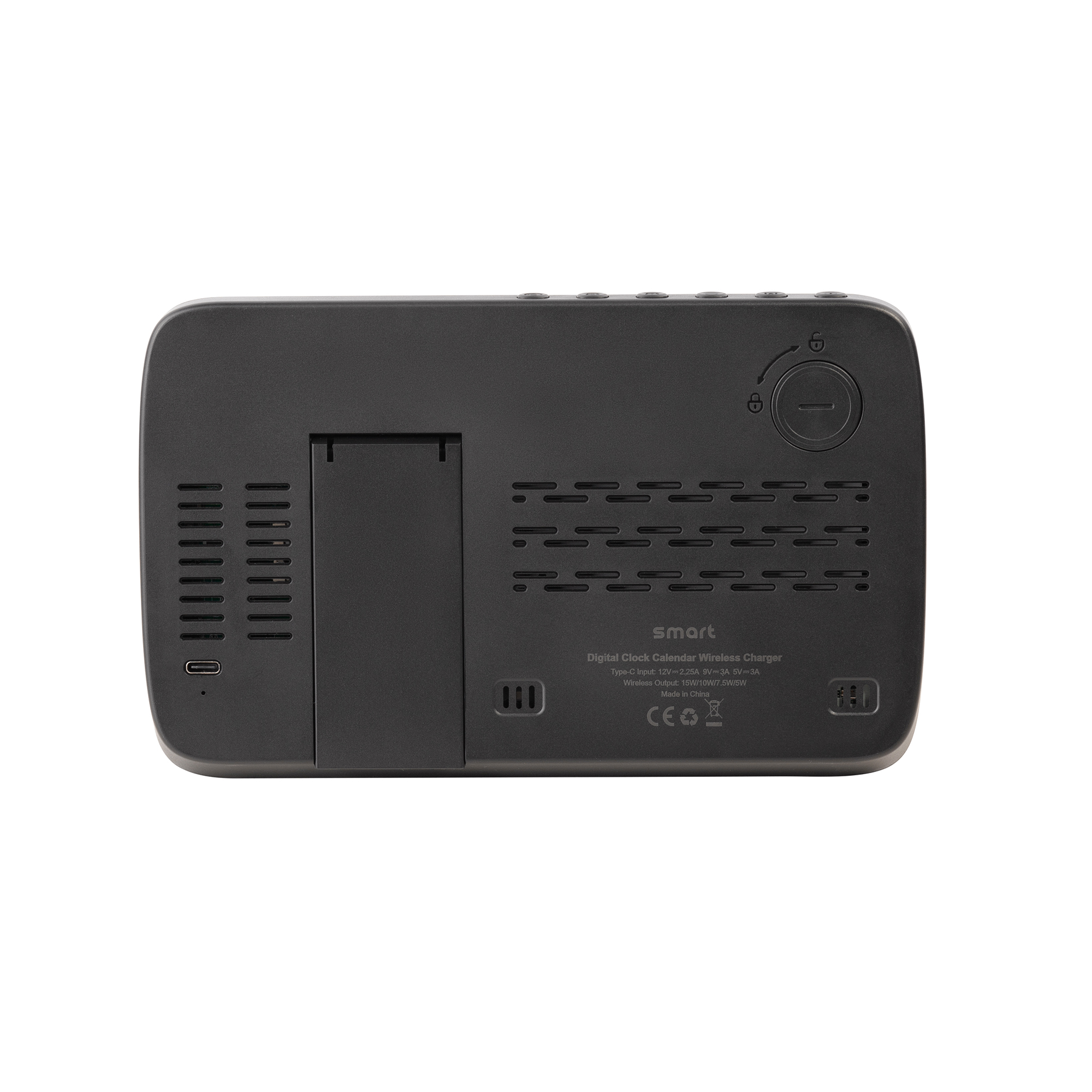 Настольные часы "Smart Screen" с беспроводным (15W) зарядным устройством, гигрометром, термометром, календарём, с подсветкой логотипа