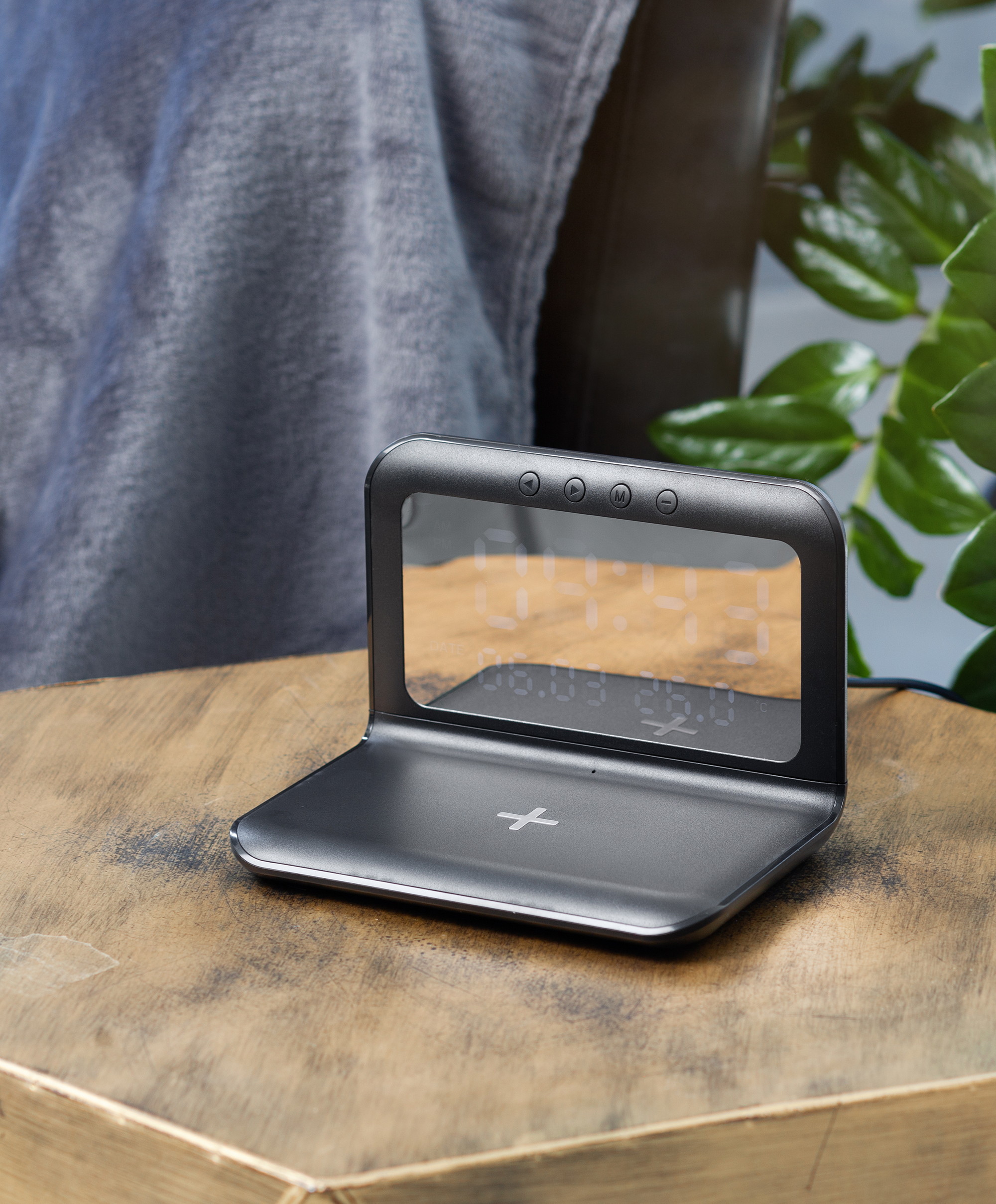 Настольные часы "Smart Time" с беспроводным (15W) зарядным устройством, будильником и термометром, со съёмным дисплеем