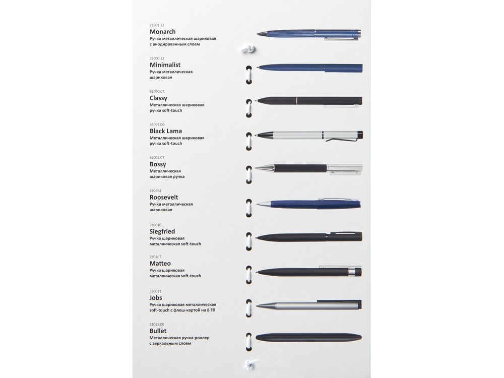 Промо-набор — идеальный инструмент для презентаций: клиенты могут подержать ручки в руках, опробовать их в деле и наглядно увидеть различия между видами нанесения. При этом все самые важные модели собраны в одном легком и компактном наборе.