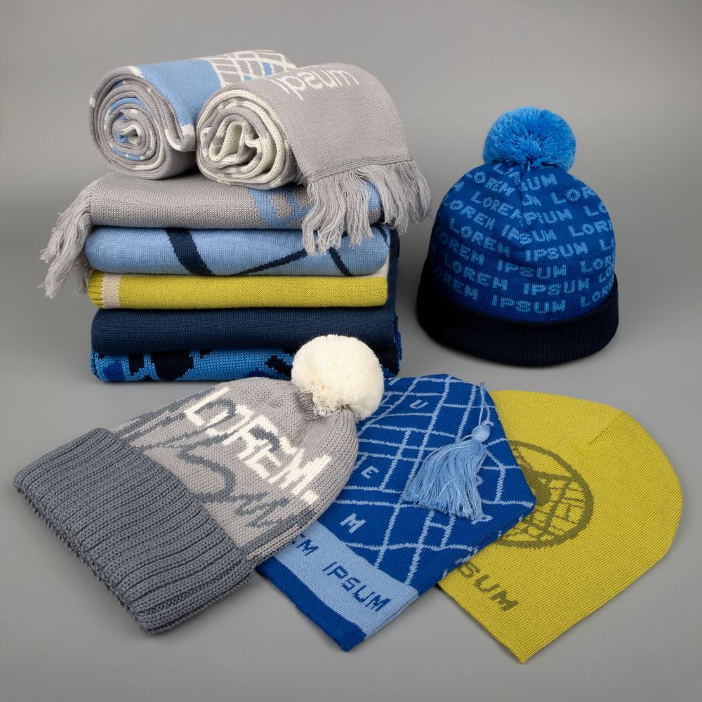 - гладкий однотонный или с вывязанным логотипом, можно добавить через опцию «Добавить нанесение»;