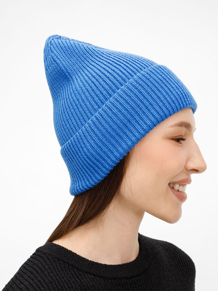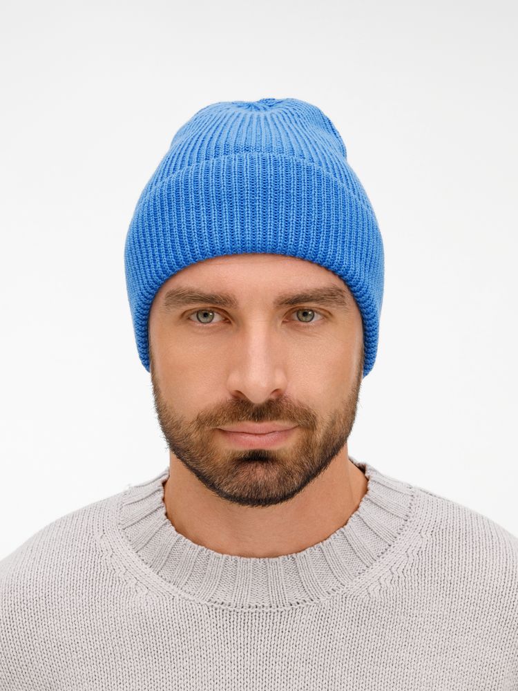 Удлиненный силуэт шапки Nobilis Mono из мягкой полушерстяной пряжи с широким отворотом создает стильный современный образ, а фактурная вязка добавляет объем и выразительность.