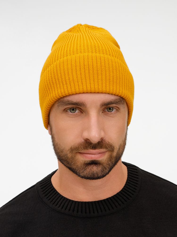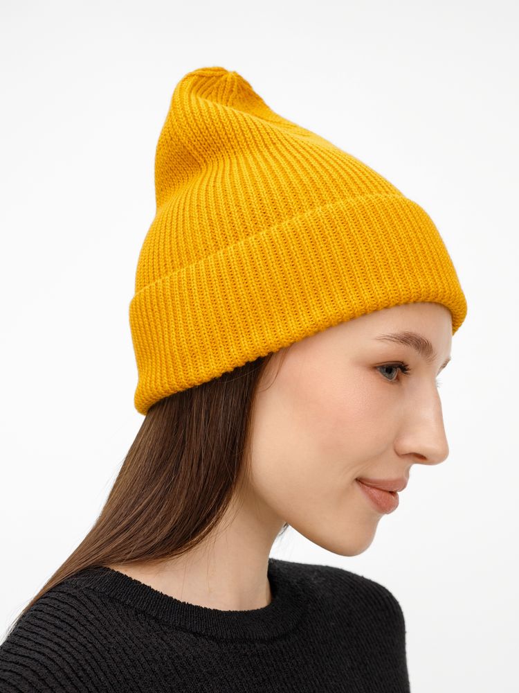 Удлиненный силуэт шапки Nobilis Mono из мягкой полушерстяной пряжи с широким отворотом создает стильный современный образ, а фактурная вязка добавляет объем и выразительность.