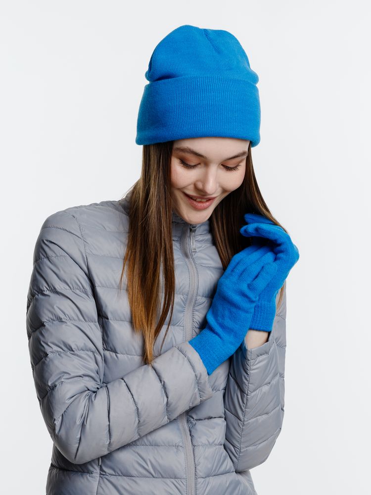 Двухслойная шапка из акриловой пряжи с регулируемым отворотом 7–10 см.