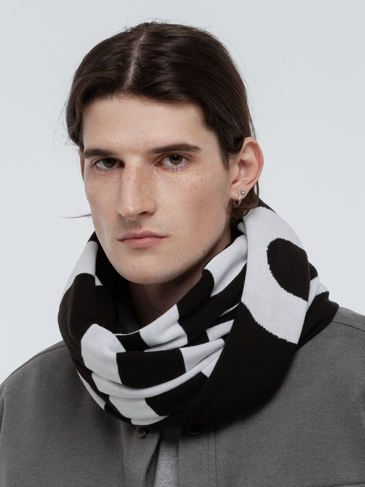 Шарф, который устанавливает свои правила! Ему девиантно общество, где принято носить однотонные аксессуары.Шарф с жаккардовым рисунком.